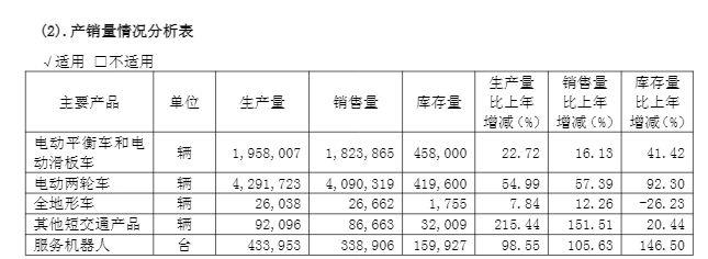 根据九号公司(SH689009,股价44.93元,市值324.69亿元)3月30日晚间发布的2025年年度报告,公司电动两轮车业绩增长明显:2025年电动两轮车销量达409.03万台,同比增长57.39%;实现营业收入118.59亿元,同比增长64.45%。截至2026年1月,九号电动两轮车在国内市场累计出货量已突破1000万台。