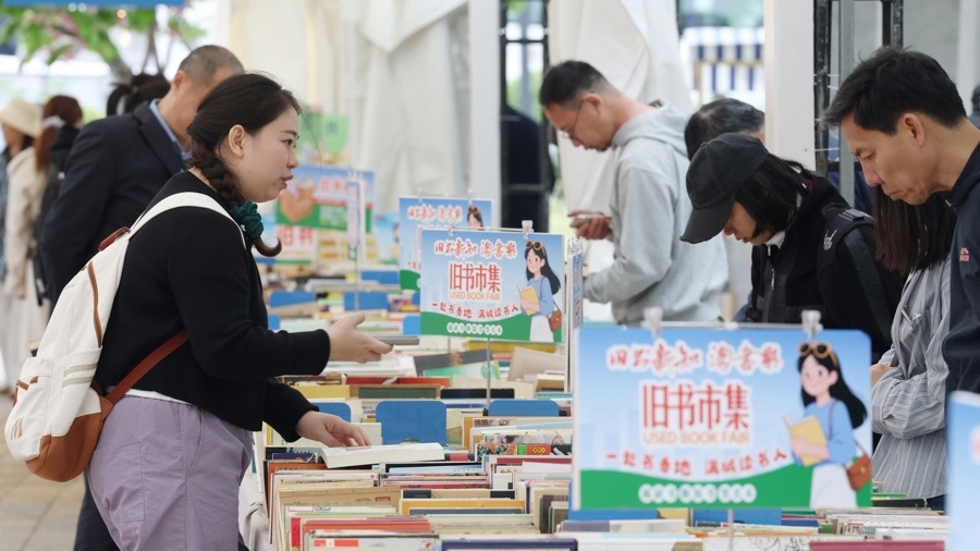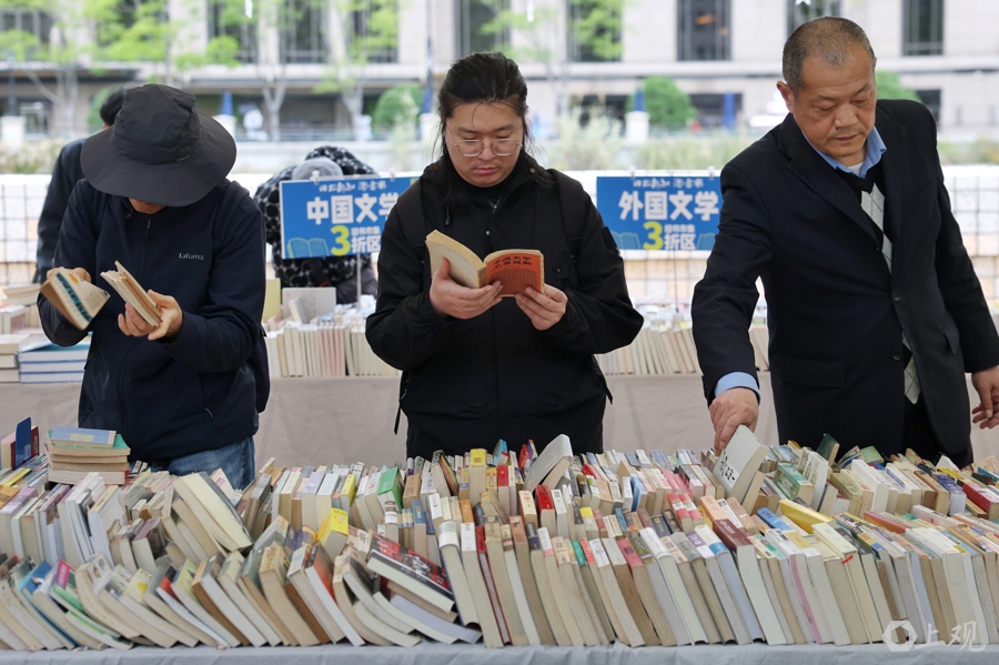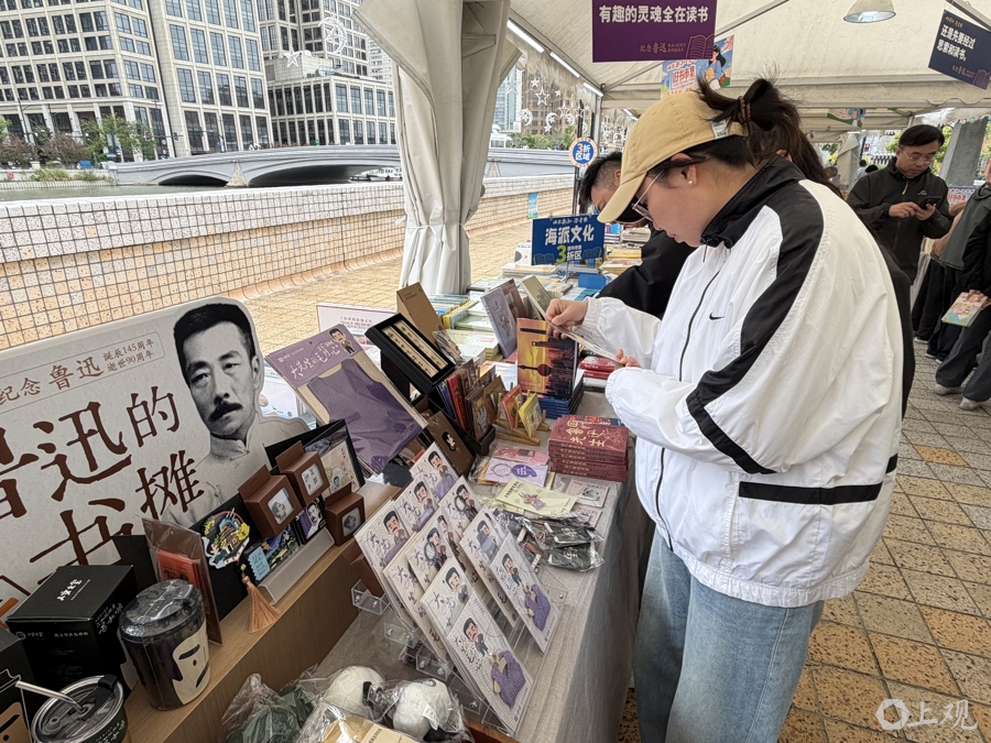“很多外国游客特别喜欢旧书市集的氛围,他们觉得这是上海的文化特色。”上海图书公司总经理石洪颖翻出手机里的照片,“前一天傍晚我们还在布展,就有好几个外国朋友很感兴趣。在‘报刊亭’打卡装置前,这对外国夫妇拍了好几张照片。”今年,“旧书新知·淘书乐”旧书市集和大隐书局·虹书舫构成了市民游客步行可达的一条书香“citywalk”路线,石洪颖和书店同事们已经去对面的新空间“取过经”,“不是竞赛,是互补,满足市民游客差异化的阅读休闲需求。旧书不是‘板起面孔’的,我们也想把市集做得更有趣。”